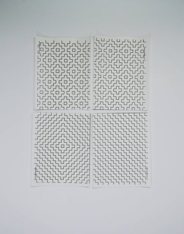 - Four 4x5" adhesive sheets featuring sashiko designs