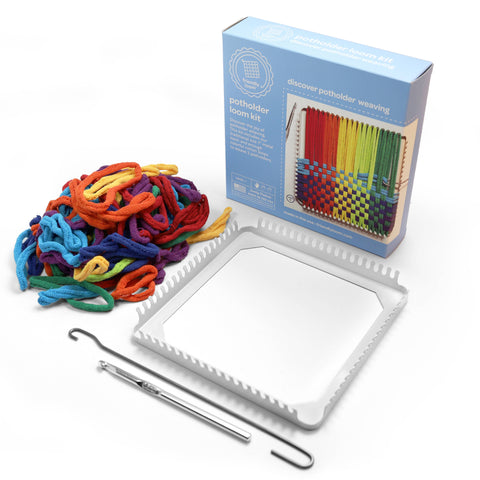 These custom-made traditional metal looms and cotton loops can make colorful potholders for the home, as gifts or to sell. It’s fun, and easy to do for all ages!