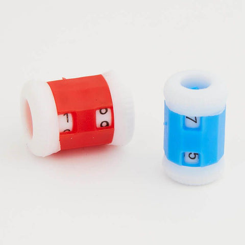 Our row counter is perfect for counting rows and counting stitch pattern repetitions, or for counting increases or decreases of the number of stitches in consecutive rows. Comes in two sizes: Small (blue) and large (red).