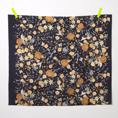 The design features a stunning floral print and its cotton-silk composition is ideal for a range of different sewing and DIY projects, including lingerie, scarves, skirts, dresses, and much more.